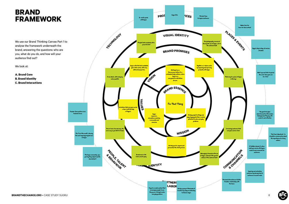 - the brand framework mapped out on the brand thinking canvas #1 and #2